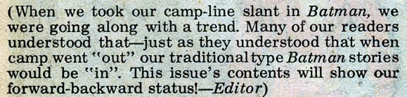 (It’s hard to know whether to take Green Lantern’s thought-balloon comment in that last panel as a nod to the camp aesthetic, or as a dig at it. Maybe Gardner Fox himself wasn’t sure. In any event, it clearly demonstrates that DC hadn’t put all thought of that trend behind them yet.)