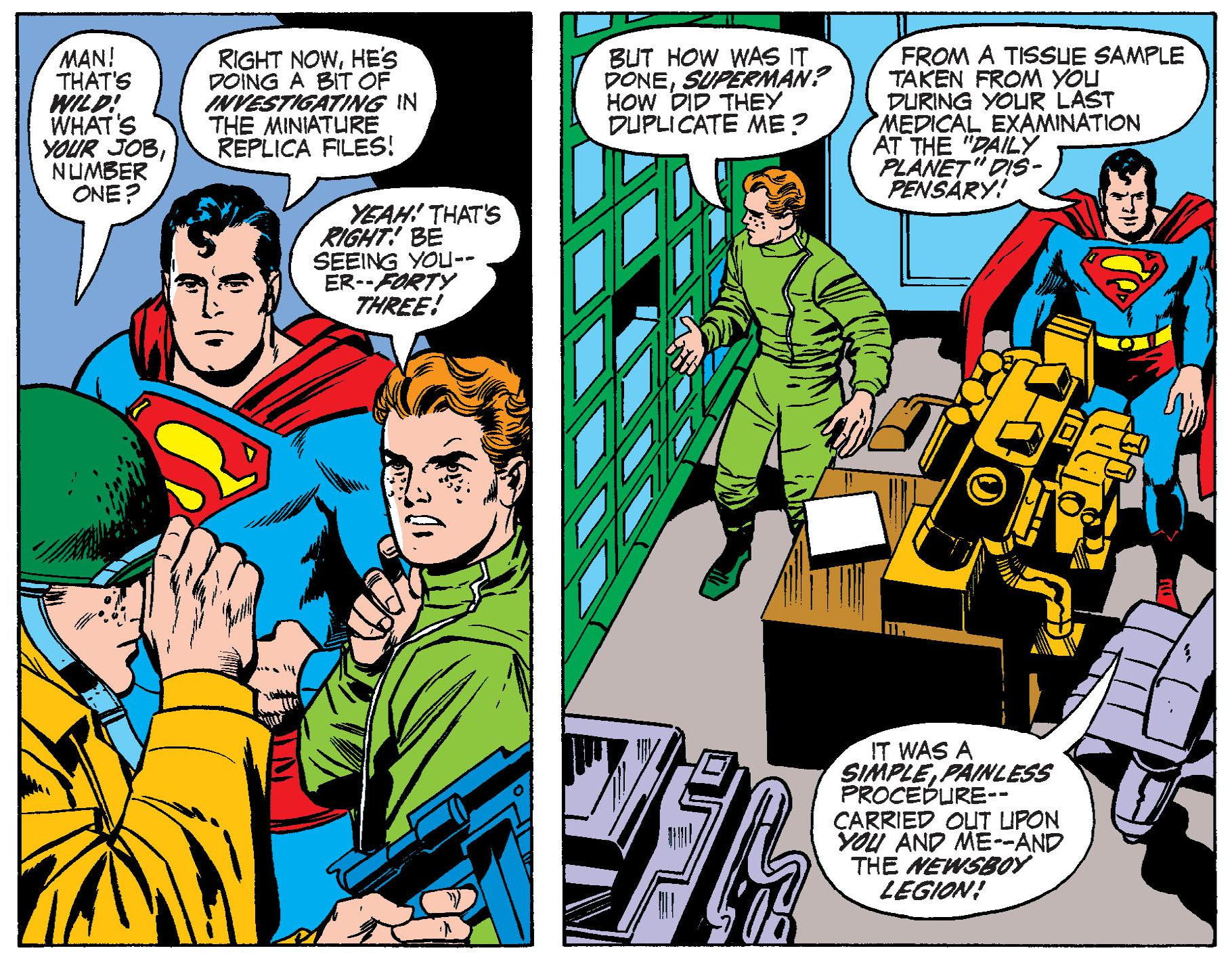 Also worth noting here: it appears Lois visited the Project with Superman to voluntarily donate her tissue samples. That’s in marked contrast to the experience of Jimmy Olsen, who evidently had his samples harvested without his knowledge during a medical exam at the Daily Planet, Frankly, the handling of this idea in LL is decidedly less creepy than Kirby’s take in JO — so, points here to Kanigher and/or Bridwell.