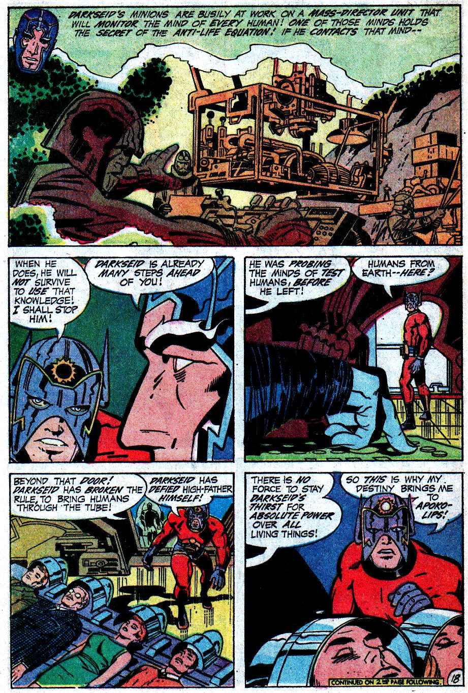 Now, writer-artist Jack Kirby (aided by inker Mike Royer) continues the story.  He opens issue #7’s chapter in a novel fashion, with a character — Highfather — who, while quite familiar to readers of FP‘s companion title New Gods, has only been spoken of in this series, never seen — until now: