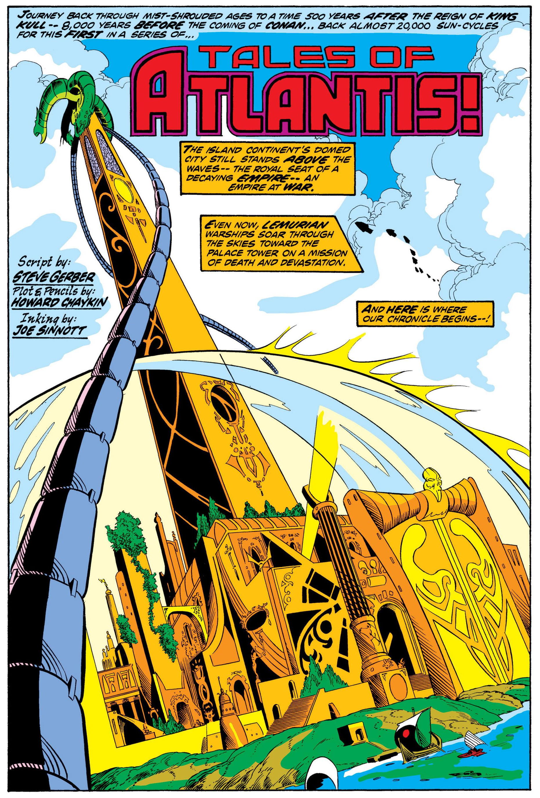 Back in May, 1973, by fifteen-year-old self was so delighted to see concepts and characters from the “Tales of Atlantis” Sub-Mariner backup feature (on which Gerber had collaborated with artist/plotter Howard Chaykin) show up here in “Man-Thing” that it didn’t bother me that Mayerik had lifted his visual of the city of Atlantis directly from Chaykin and Joe Sinnott’s splash page for the first “Tales” installment in Sub-Mariner #62 (assuming that I even noticed).  Hey, at least they colored Kamuu and Zartra correctly this time!