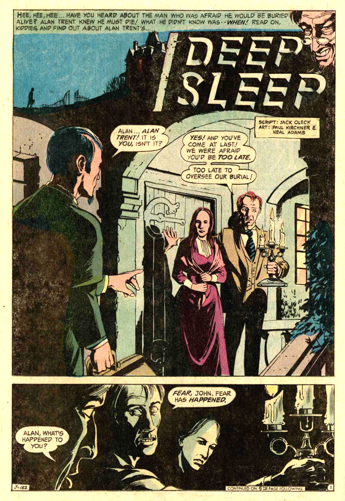In any event, however it happened, Conan #37 is where “The Curse of the Golden Skull!” — a 19-page color comic-book story by Roy Thomas and Neal Adams — ultimately appeared.  And while we’ll have still more to say about the behind-the-scenes aspects of its productions a bit further on, I figure we’re ready to move on to take a look at the work itself; and so, without further preamble…