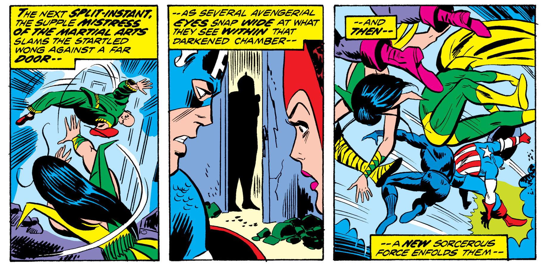 Poor Wong… he seems to be called on constantly to demonstrate his martial arts prowess, only to have his ass promptly and easily kicked.  (Or maybe that’s just a thing in Steve Englehart stories.)